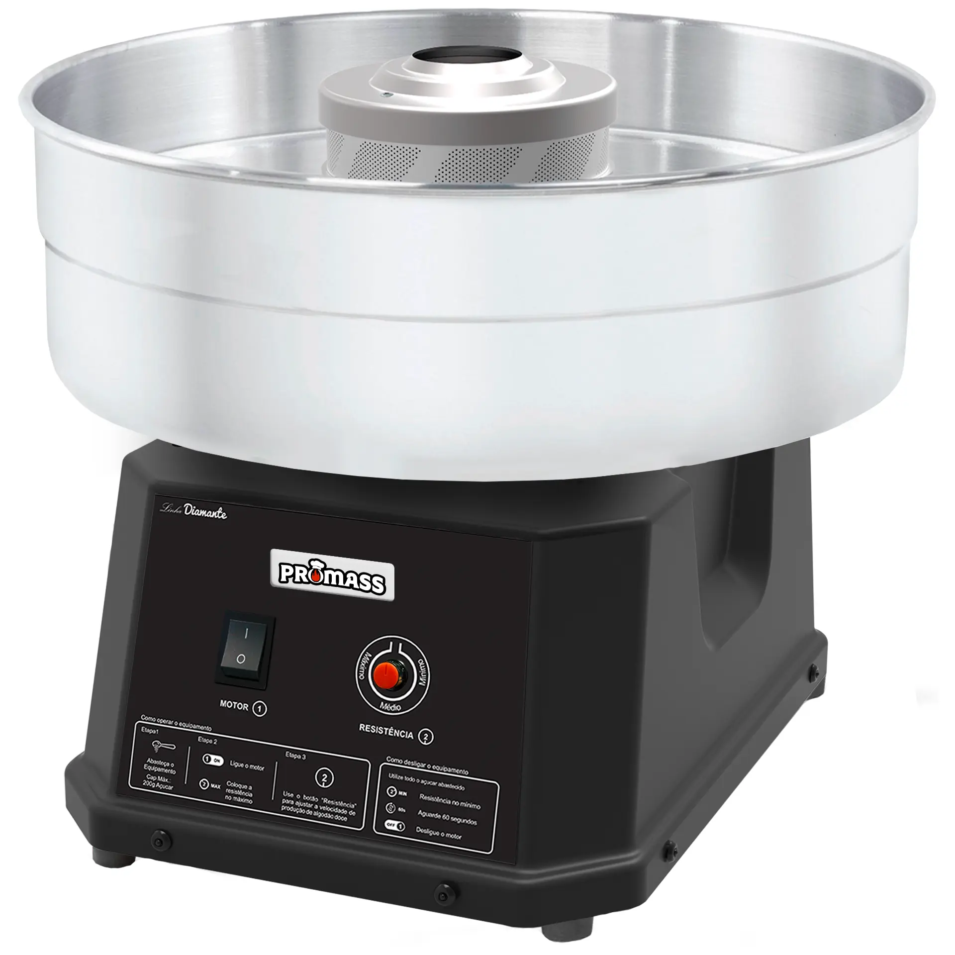 Descripción:Máquina de algodón de azúcar con regulador de potencia y estructura reforzada. Ideal para eventos y ferias, con capacidad para 180 unidades por hora.