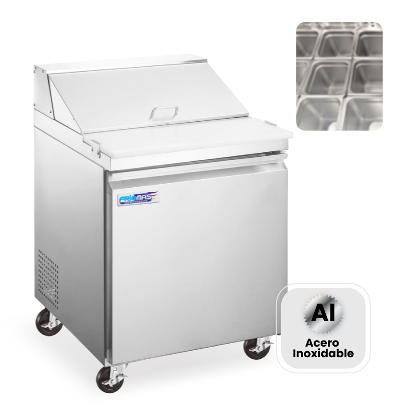• Equipo utilizado principalmente en restaurantes, pizzerías o establecimientos de comida rápida para preparar sándwiches, ensaladas y otros platillos similares. Su función principal es mantener frías y organizadas las diferentes verduras, carnes, aderezos y otros ingredientes que se utilizan en la preparación de estos alimentos.