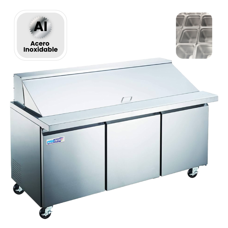 Equipo utilizado principalmente en restaurantes, pizzerías o establecimientos de comida rápida para preparar sándwiches, ensaladas y otros platillos similares. Su función principal es mantener frías y organizadas las diferentes verduras, carnes, aderezos y otros ingredientes que se utilizan en la preparación de estos alimentos.