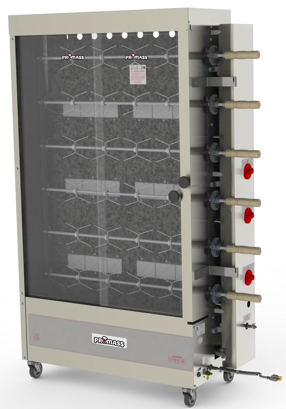 Versión ampliada con 6 espetones y más capacidad. Ideal para restaurantes y asaderos.