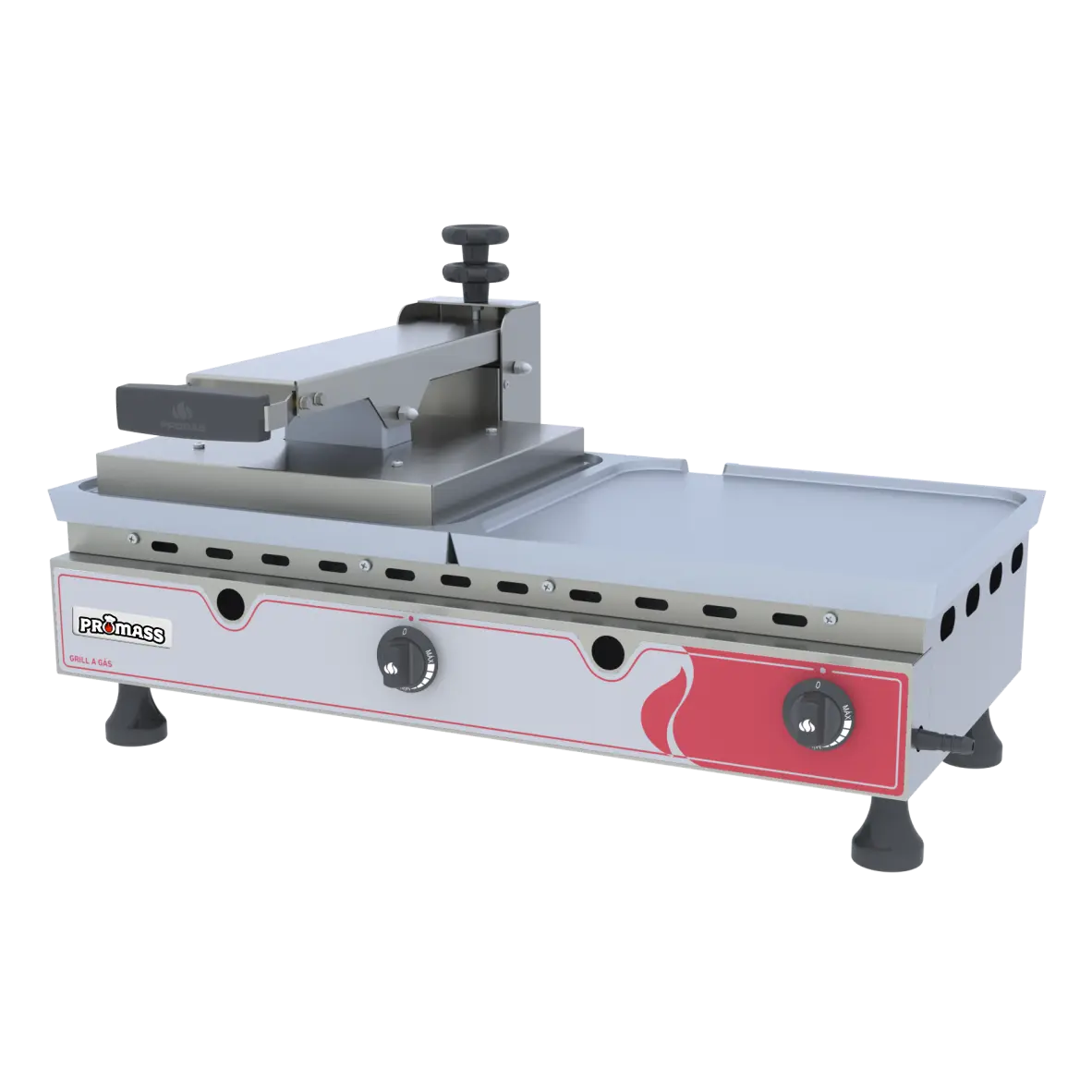 Grill con apertura ajustable, placa térmica de aluminio y salida de grasa. Ideal para operaciones versátiles y limpieza sencilla.
