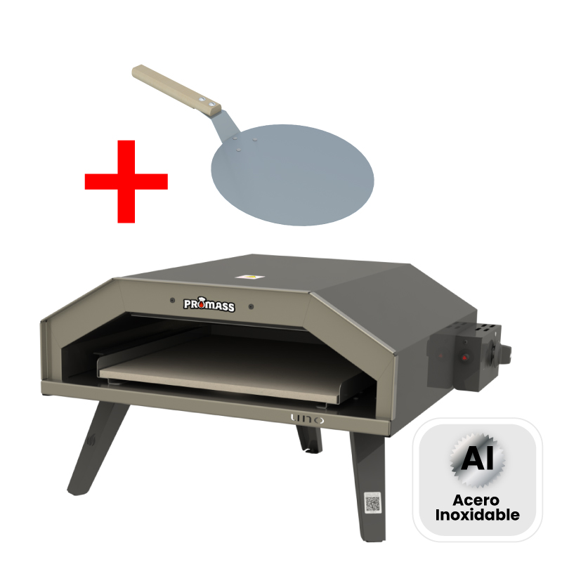 Descripción:Horno para pizzas de hasta 40 cm con piedra refractaria, patas plegables y estructura en acero.